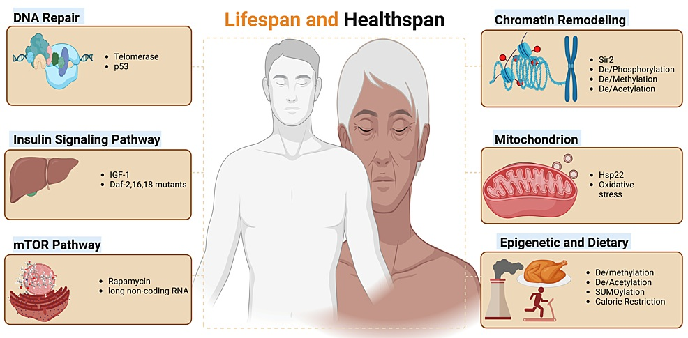 Healthspan is defined as the period of life spent in good health. This complex measure is linked to factors such as genetics, epigenetics, and environment, and it is assessed using biological age (the biological clock).